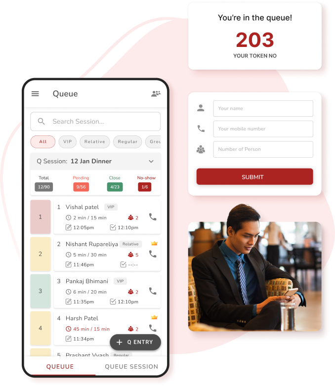 - Customers can Register for Queue Entry from Mobile by Scanning QR Code.