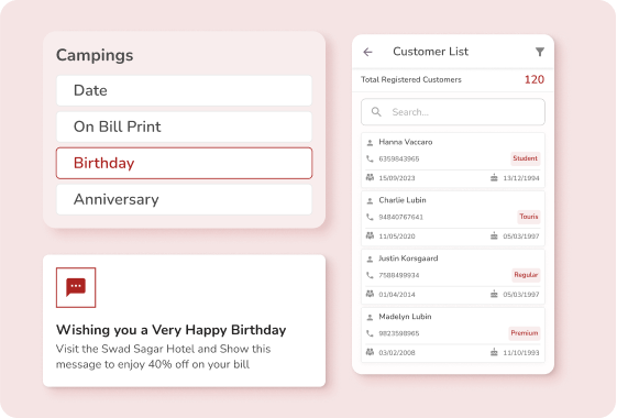 Make your customers feel special by creating SMS campaigns wishing them their special days! Offer special rewards, discounts and offers to your customers for a personalized experience.