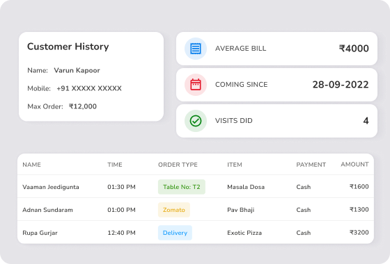 Keep track of all your sales using Eresto in-built CRM feature. You also get insights about your customers’ preferences by tracking their purchase history and special notes. Use all this data to improve overall service and win more customers.