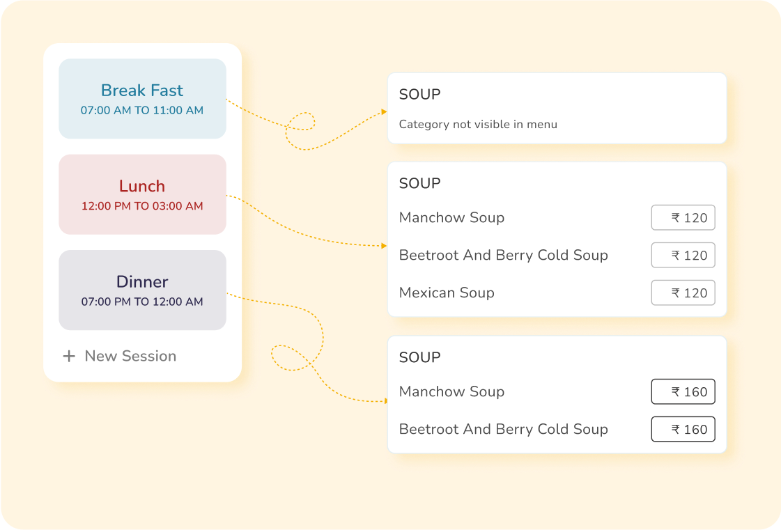 Create different dine-in areas and a separate menu for each! Manage all the areas and their menus with one Eresto restaurant POS software. In addition to that, you get complete pricing control over all your menus, whether physical or online!
