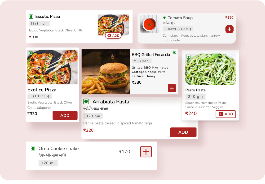 Showcase your dishes with high-quality images and detailed descriptions, captivating customers' attention.